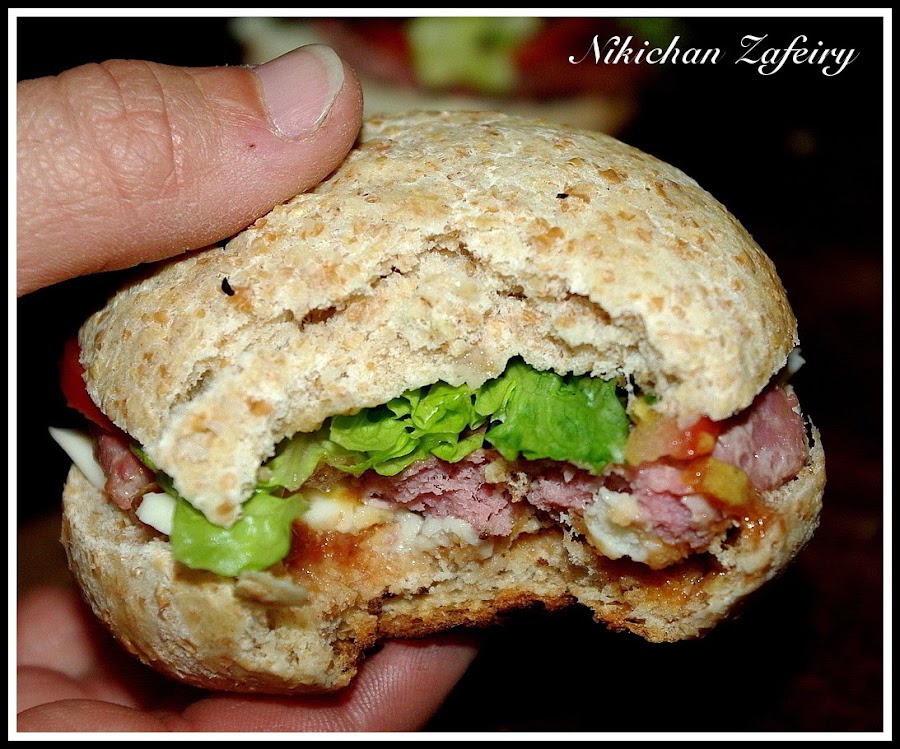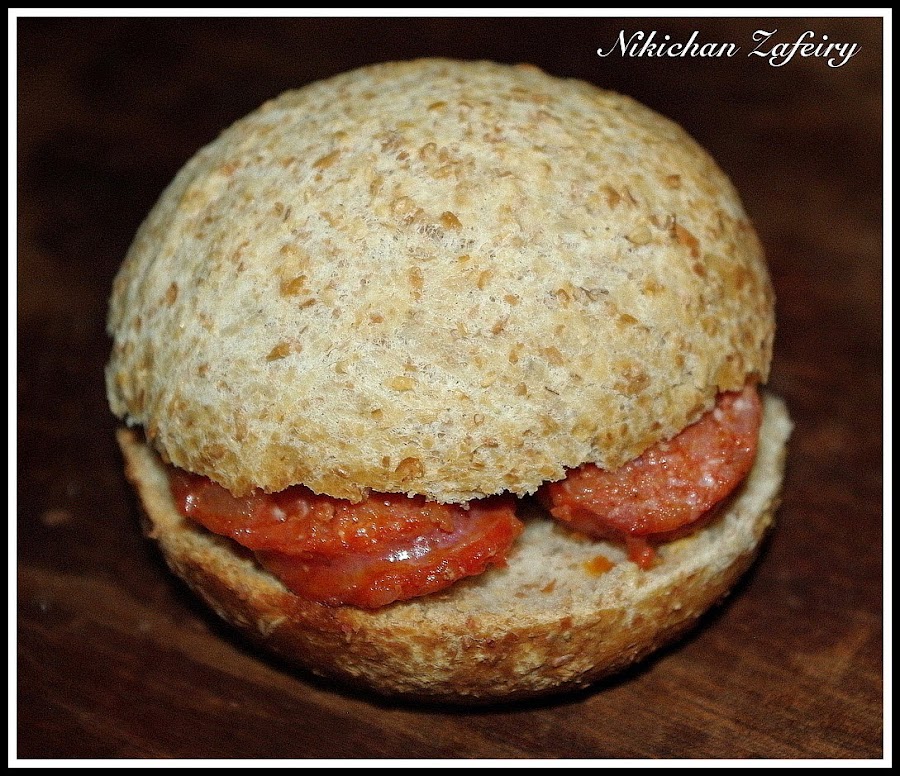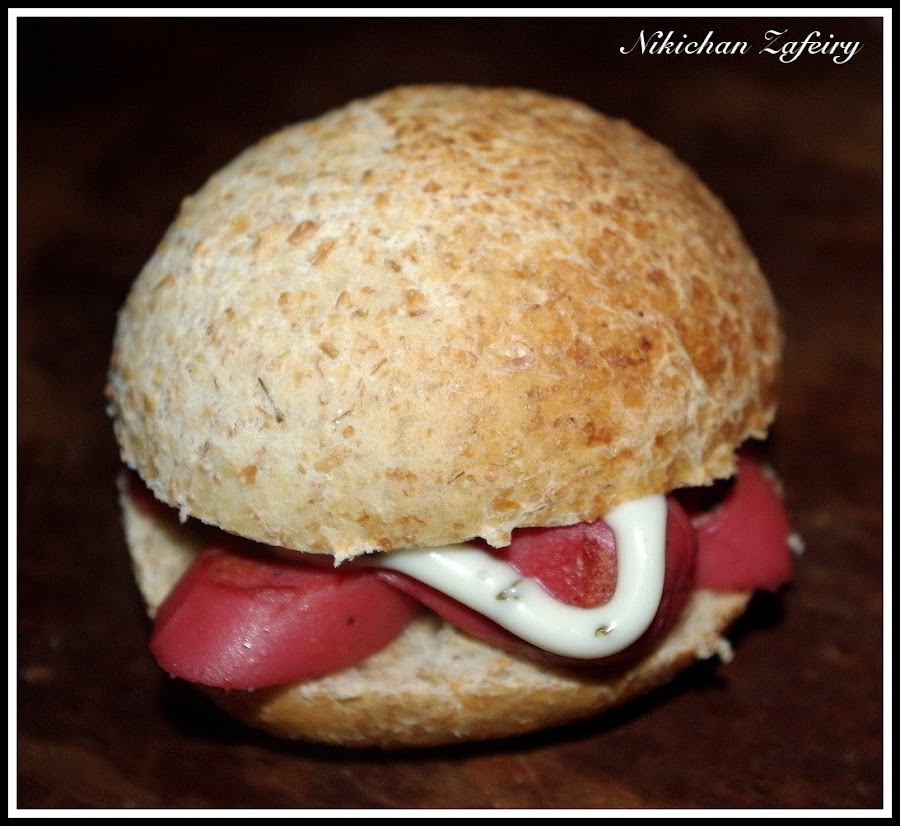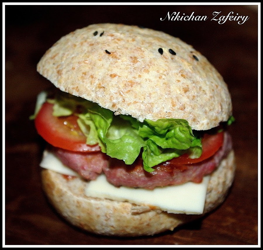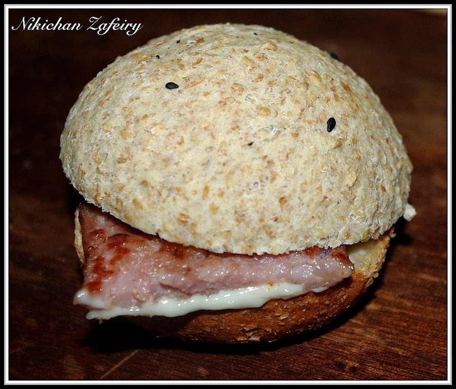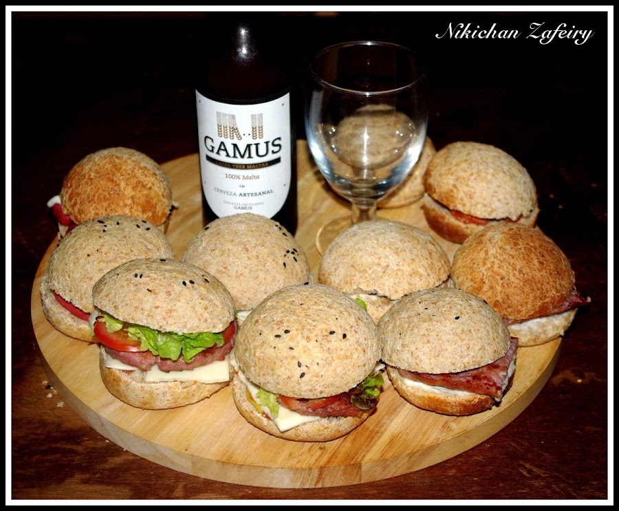 Como os prometí hace unos días, esta es la cena para dos que nos preparamos con los panecillos de hamburguesa integrales. Si te perdiste la receta y quieres preparar la masa puedes verla aquí Pan de Hamburguesa Integral. Da para unas 20 unidades... Nosotros preparamos unos pocos con relleno salado, guarde otros en una bolsa de plástico bien cerrada y aguantan muy bien. Pero si los vais a consumir muy lento también se pueden congelar.