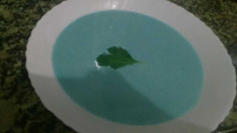 Ahora tenemos nuestra sopa azul, que podemos adornar con algunas hojitas de apio. Y ya podemos ser Bridget Jones y esperar a que Mark Darcy llame a nuestra puerta con el periódico, porque salimos nosotras en portada. Bueno, vale, a lo mejor eso no sucede pero sí que podemos disfrutar de un cumpleaños muy especial y nos lo merecemos, hay que celebrar la vida y qué mejor que con una sopa azul porque, plagiando a Mark Darcy; la sopa azul está bien, hay muy poca comida azul.