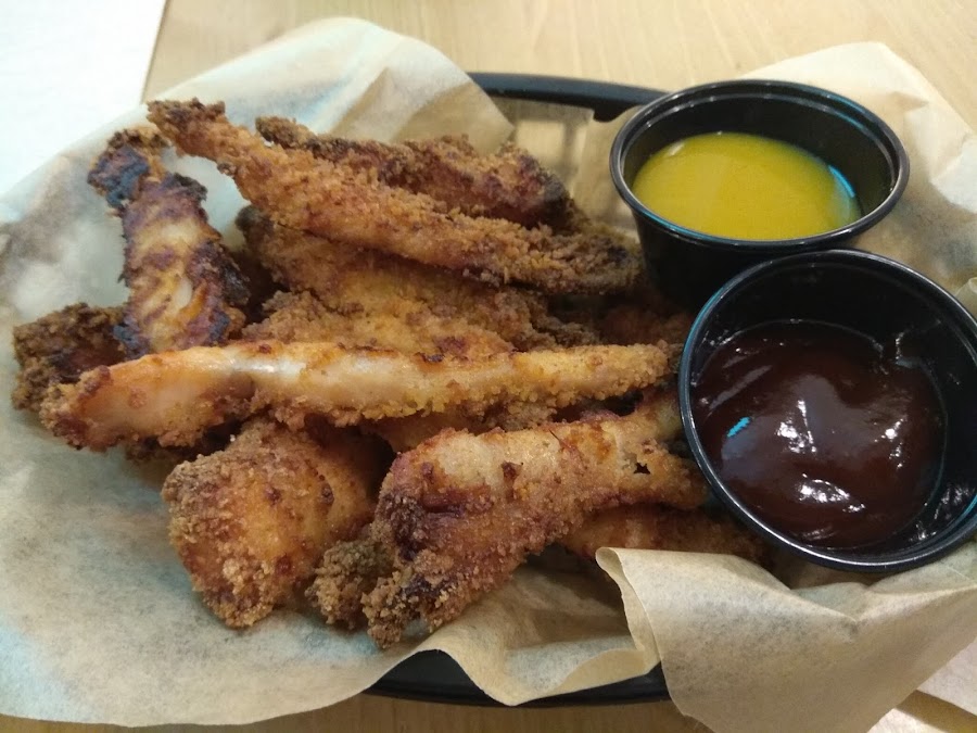 Mi hija la pequeña,como lo terminan las hamburguesas se pidio unos finguers de pollo.Creiamos que iban a ser pequeños pero resulto que era una cesta un tanto grandecita y evidentemente no se los pudo terminar, pero estaban buenos y no resultaban secos.Los pusieron calientes,se notaban que estaban recien hechos y acompañados de dos tipos de salsa, una de kechup y otra como si fuera mostaza mezclada con algo( no supe saber que era en realidad).Pues como veis en la foto era bastante cantidad y mi hija no pudo acabarlos todos.