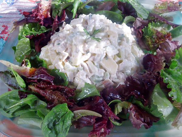 Se me ocurrió , que como tenia restos de pollo asado, apio, manzana y mayonesa, dije: " ya esta una ensalada de pollo " !!Fue muy buena idea. Luego hice unos pimientos rellenos de tortilla de patata, aunque las fotos que hice no son demasiado buenas. Y nuestros amigos trajeron unas empanadas argentinas( ellos son de allí) riquísimas!!! Os pongo las fotos para compartir....