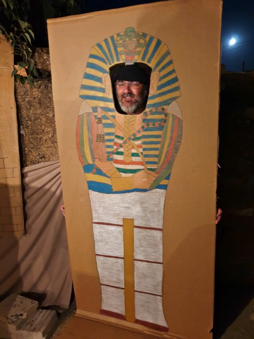 Además, como ya tenía en mente la cena temática me agencié en el barco que hace el crucero por el Nilo de cuatro chilabas: una por cada miembro de mi familia. Este año los disfraces han sido autóctonos y muy baratos.
