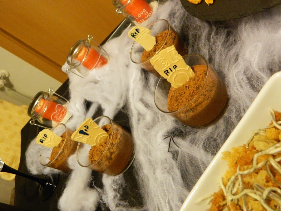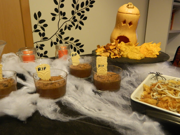 Ahora toca el postre, una Mousse de chocolate, con una decoración que parece una tumba, la receta del postre la traeremos el próximo domingo, una vez este la enlazaremos desde aquí.
