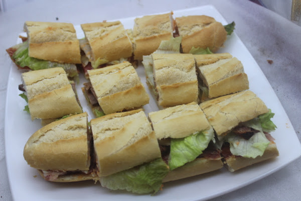 La otra noche se nos ocurrió preparar para cenar tres bocadillos, después trocear cada bocadillo en cuatro trocitos y servirlos en una bandeja para compartir, una deliciosa cena variada, divertida, en la cual se pueden hacer bocadillos de los restos de vuestra nevera.