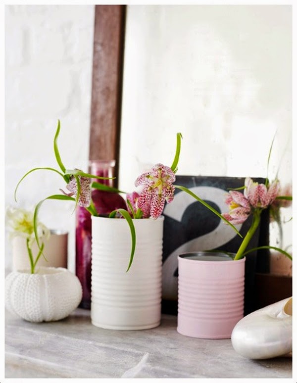También pondré flores frescas en latas recicladas y pintadas como la imagen de Sweet Paul Magazine una revista que a todos los amantes de la cocina os encantará y que incluí en Dar la lata en primavera.