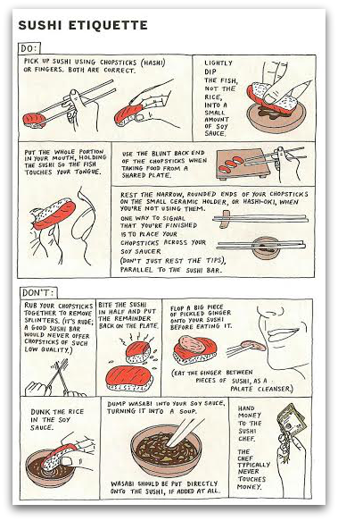 Aquí os dejo también una imagen de las cosas básicas que debes saber cuando comes en un japonés, no está de más ser políticamente correcto, ¿no?