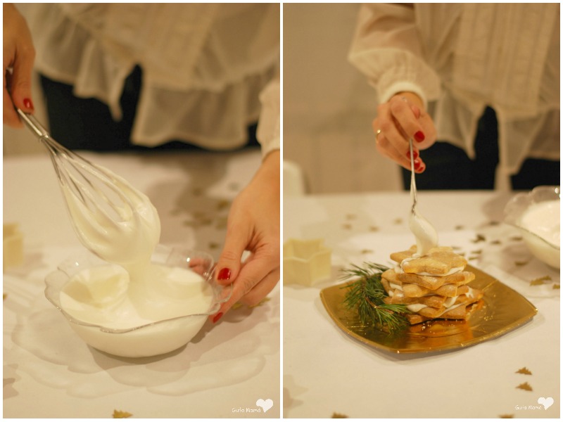 Buscaremos la densidad que nos guste, para ello, podemos ir añadiendo unas gotas más de zumo de limón o de agua, mezclando bien a continuación, hasta que consigamos que la mezcla quede a nuestro gusto. Para esta receta, se recomienda que quede un poco espesa, para que se mantengan las capas durante el montaje del árbol. Una vez se seque, quedará endurecida cumpliendo con su función de "pegamento" dulce.