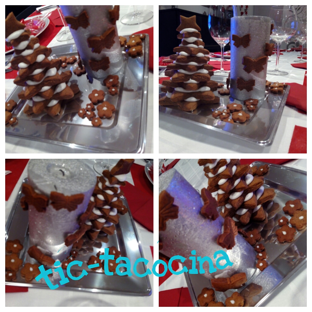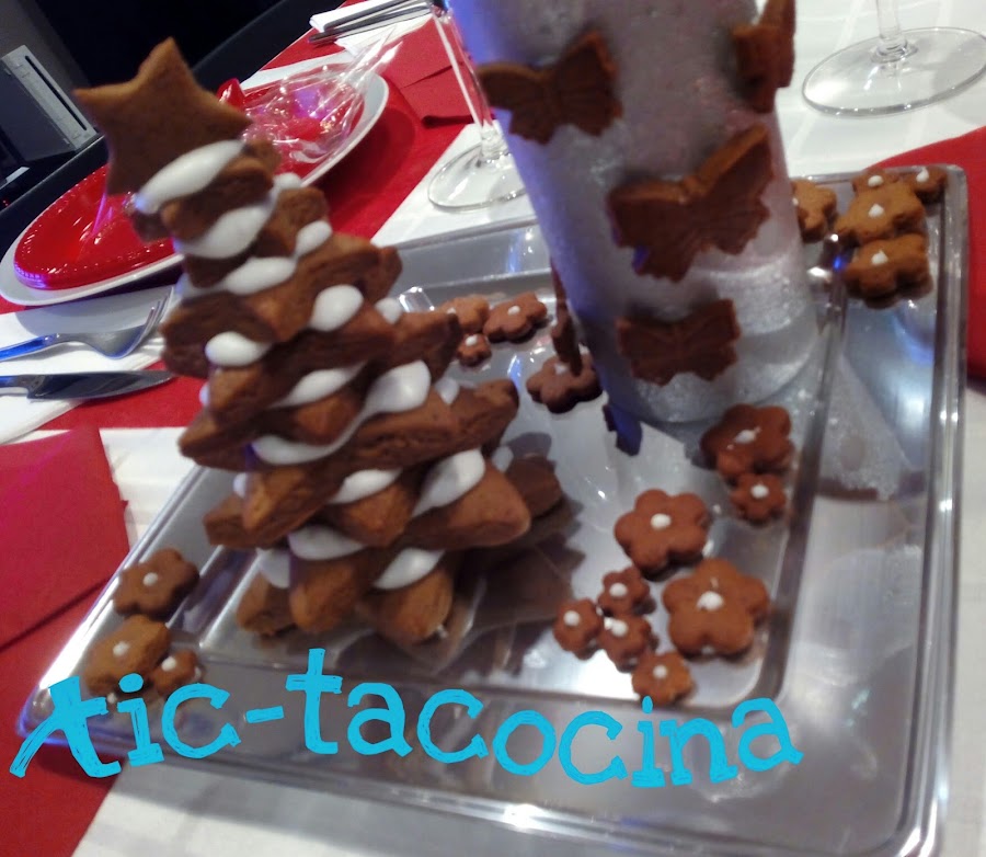 Como este año ha ido de galletas, pues el centro no podía ser menos. Hemos hecho este arbolito de navidad con las plantillas que teníamos de estrellas y todo lo hemos pegado con la glasa que teníamos de adornar las galletas para el árbol.