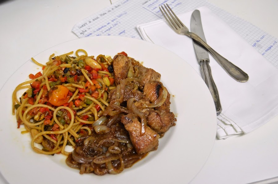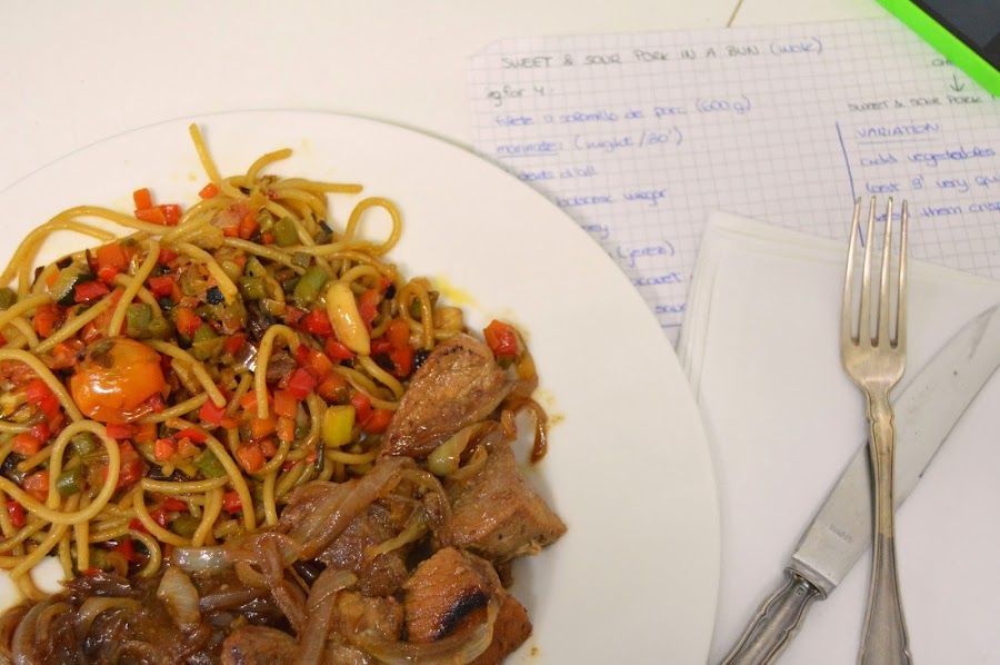 Nosotros esta vez lo comimos con espaguetis salteados con verduritas y salsa de soja, puro vicio.