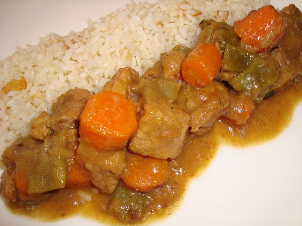 Sofreír unos ajos cortados a láminas en aceite de oliva. Retirar. Añadir el arroz y sofreír unos minutos. Añadir los ajos. Se sirve al instante junto con el guiso de cerdo.