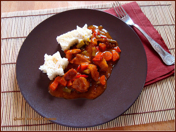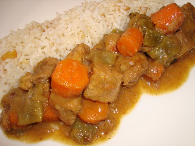La receta de hoy no solo es de los primeros años del blog sino que también fue una de las primeras que cociné con curry. Recuerdo que en algunas ocasiones le ponía nata (crema de leche) y esta vez no lo hice. Seguramente porque me pareció que no le pegaba nada a las judías verdes, un ingrediente insólito en este guiso, pero que debí incorporar porque andaban por la nevera... No me extrañaría nada que fuera por eso jaja!..