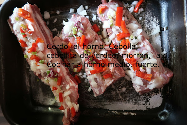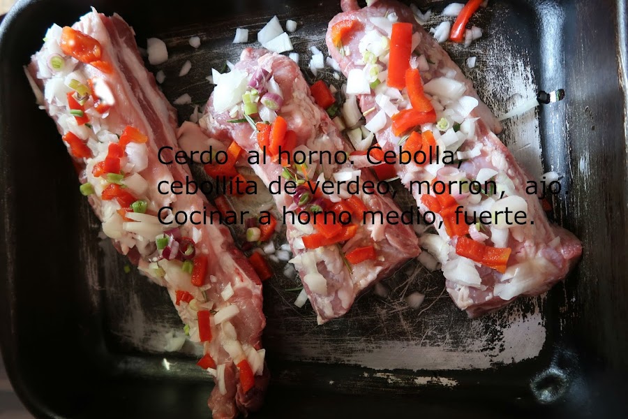 Picar la cebolla y el morrón en chico. Esparcirlo sobre la carne.