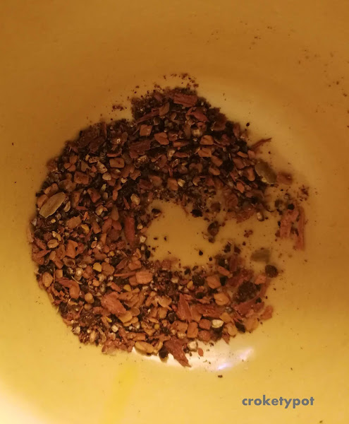 ELABORACIÓN DEL CERDO: En un molinillo o en el mortero, moler las semillas de comino, semillas de cilantro, granos de pimienta, semillas de cardamomo, clavo y canela.