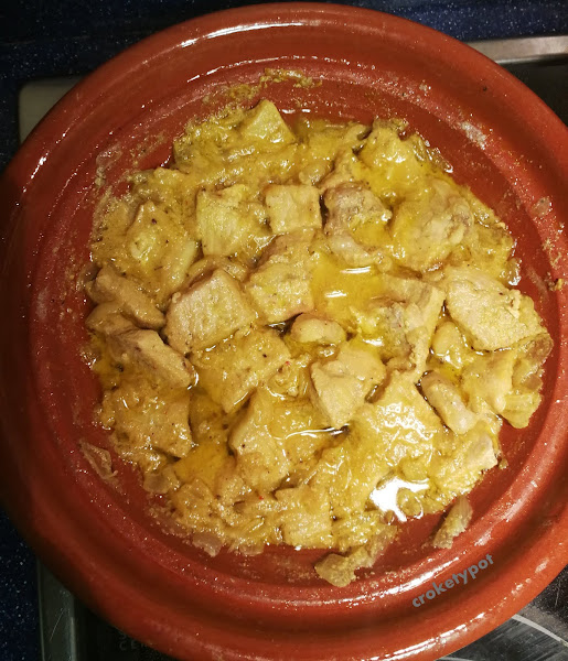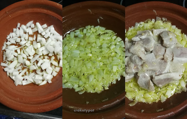 Calentar cuatro cucharadas de aceite en una sartén antiadherente o en el tajine. Hoy lo he preparado en el tajine.