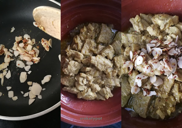 En una sartén, a fuego medio, añadir las semillas de mostaza, tapar la sartén y esperar hasta que las semillas empiezan a saltar, añadimos las almendras u otro fruto seco, y tostamos.