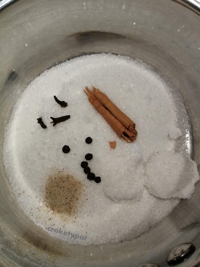 ELABORACIÓN: En un cazo ponemos a hervir suavemente, el vinagre, el azúcar, y el resto de ingredientes para aromatizar, durante 10 minutos.
