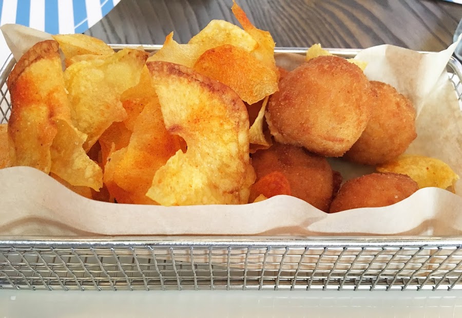El plato que más nos gustó como entrante fueron los calamares, muy crujientes y cortados muy finos. Las patatas bravas tenían un ligero toque picante, correctas. Por último, las croquetas sí os las recomendamos sin duda porque su bechamel es muy ligera y tienen mucho sabor. Vienen acompañadas de patatas fritas especiadas con pimentón, muy originales y riquísimas.