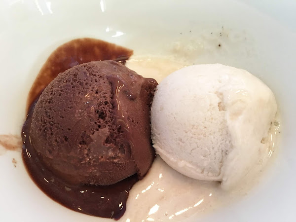 Para el postre pedimos dos helados, el más original de plátano, muy muy rico, y el de turrón también con mucho sabor. Nos quedamos con ganas de probar más postres, pero con el calor que hacía estos días lo que más nos apetecía era un helado fresquito.