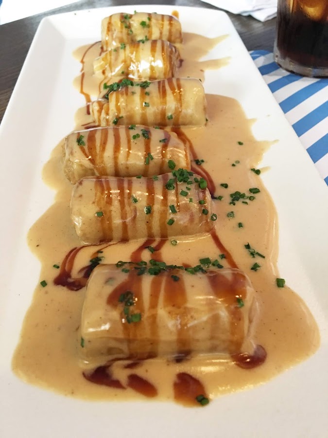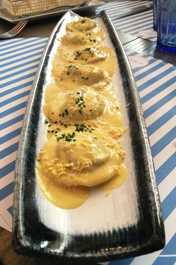 En cuanto a los segundos, pedimos platos bastante variados, los soldaditos de pavía estaban crujientes y con el bacalao muy suave, nos gustaron mucho. Los raviolis de cochinita pibil nos parecieron muy originales y los encantó que vinieran acompañados de salsa huancaína, ¡nos encanta!