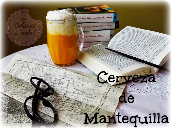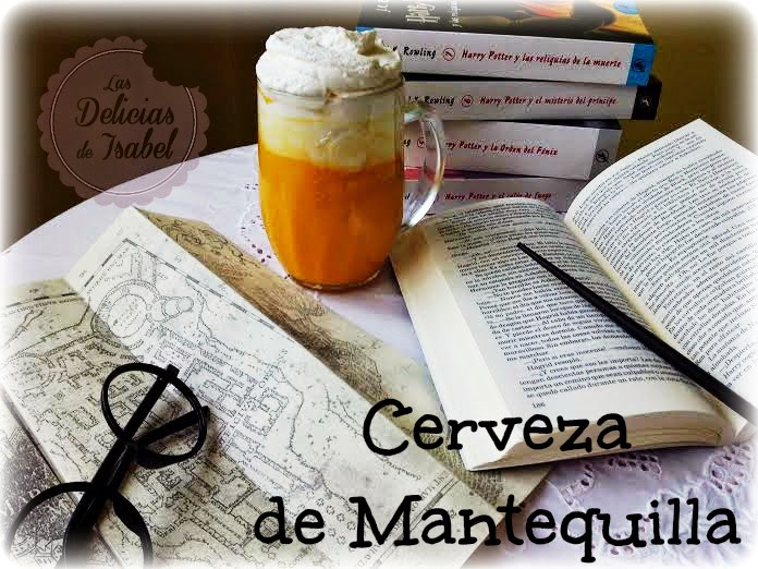 Mi receta sale por primera vez en el tercer libro de la saga Harry Potter (Harry Potter y el prisionero de Azkaban). Yo, muy fan de este mago, supe qué quería preparar desde el día que conocí la temática: cerveza de mantequilla. En los libros no explican como se prepara ni a qué sabe, con lo cual me he tenido que estrujar los sesos para hacer una versión que yo creyese la ideal. Así que entre Internet (sobre todo Pinterest) y leyéndome los libros de nuevo, os presento mi interpretación de la cerveza de mantequilla. Me declaro "potteradicta", sí, lo confieso, porque el mundo mágico ¿a quién no le gusta? A mi desde luego me encantaría tener poderes, pero me tengo que conformar con ser una simple "muggle" jajajaja. No me enrollo mas y os dejo con la receta para 2 cervecitas!