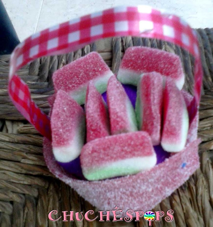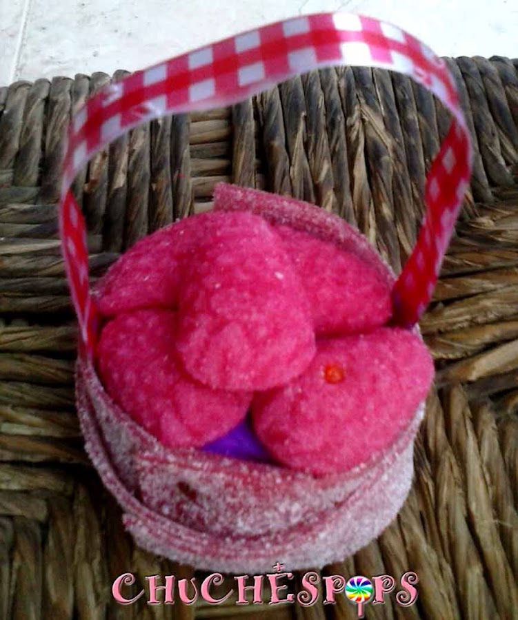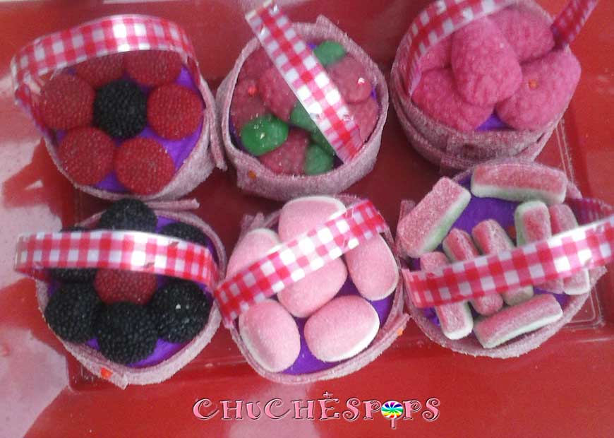 En la siguiente foto podéis ver mejor que forma le he dado a las chuches dentro de la cesta.