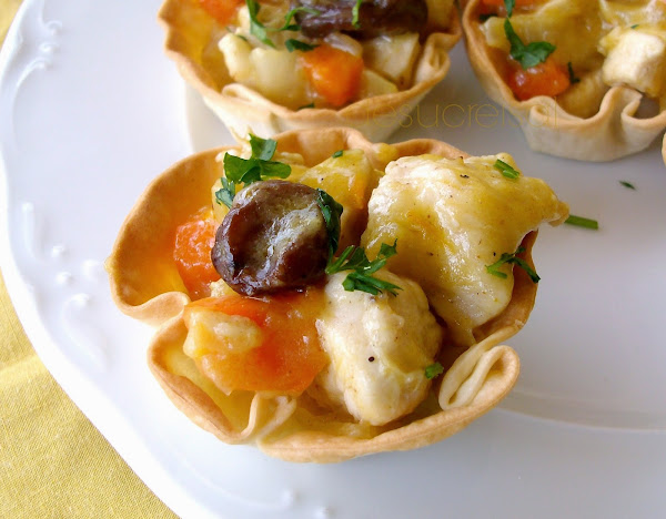 Cubre un molde pequeño para magdalenas(los de silicona van genial),,con una oblea,,pincha el fondo y hornea hasta que esten doradas.a 180º...