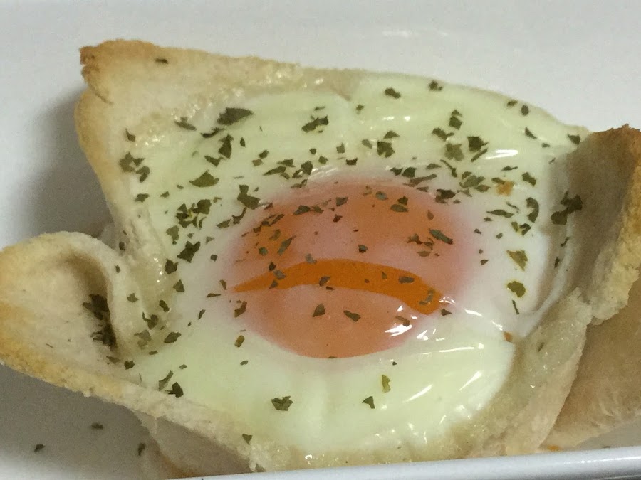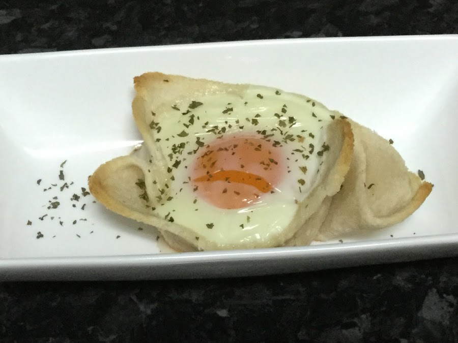 9. El resultado, es un pan doradito y semi tostado y el huevo hecho.
