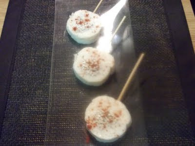 5) Rellenar los moldes, forrados con el jamón, con las angulas sucedáneas.