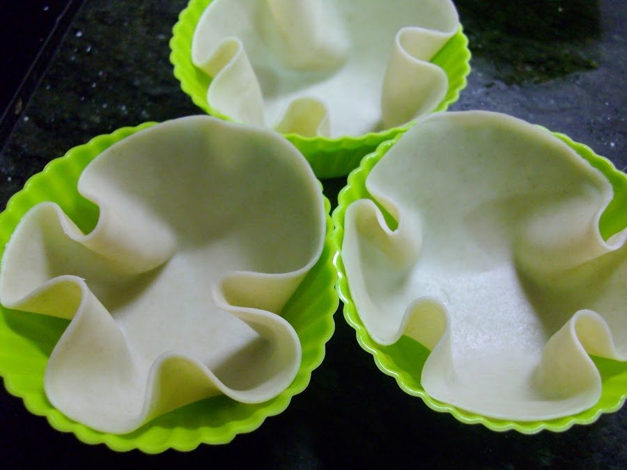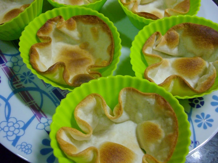 forramos unos moldes con las obleas y los horneamos..a200 grados..un momento..hasta que se doren..