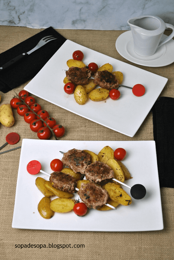 Cevapcici de ternera con patata, tomate y mantequilla al limón