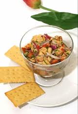 Escurrimos los camarones de la marinada, le agregamos la salsa americana y los servimos acompañándolos de las galletas de sal.