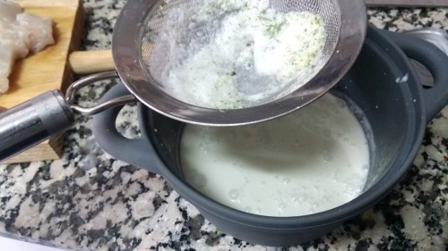 Así quedará una leche de tigre limpia y agradable. Luego le añadimos el ají (o cayena picada ) al gusto y una pizca de sal.