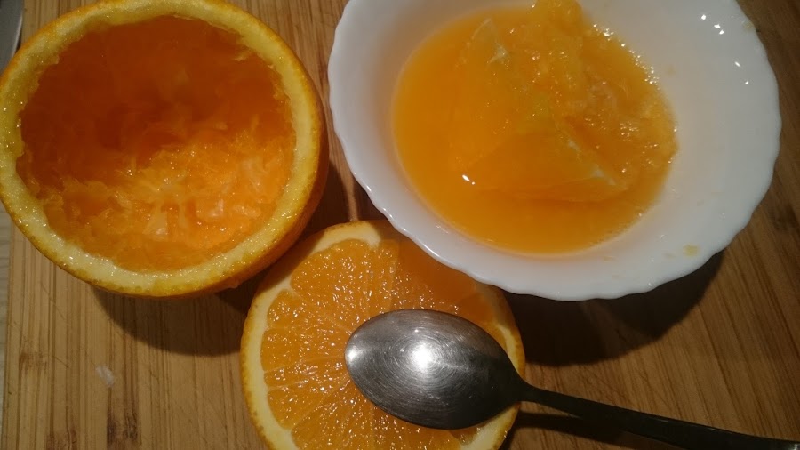 Así que lo primero que vamos a realizar es el vaciado. Cortamos el copete de la naranja y con ayuda de una puntilla vamos separando con cuidado la carne de la piel. Sin prisa, con mucho tacto, de un modo casi reverencial.