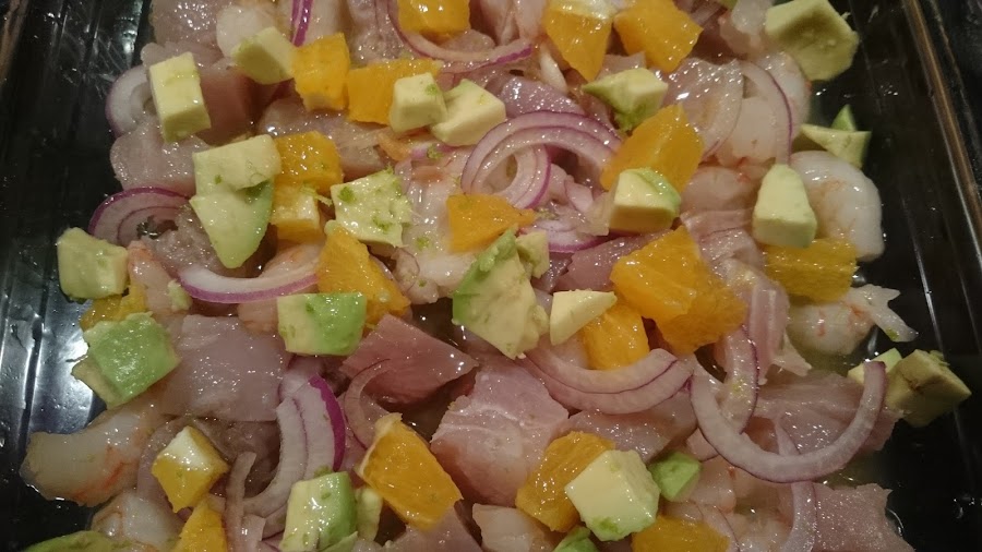 Por otro lado nos ponemos con el ceviche. NOTA IMPORTANTE: Siempre, o sea, siempre conviene congelar el pescado que vayamos a emplear, y ahorrarnos disgustos. Así hice yo y al menos, suspiras un poco más aliviado a la hora de consumir este manjar.