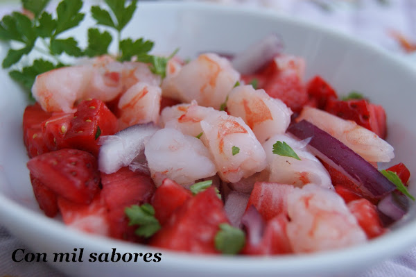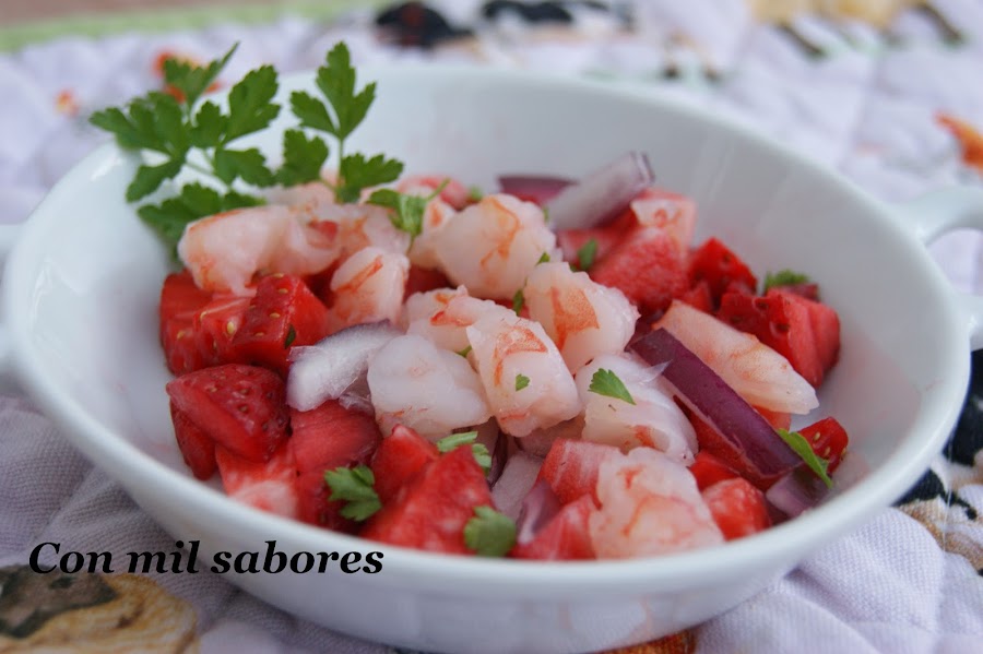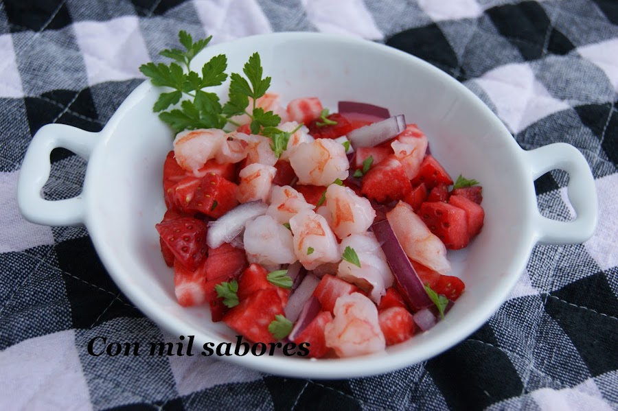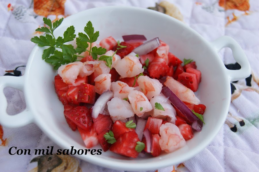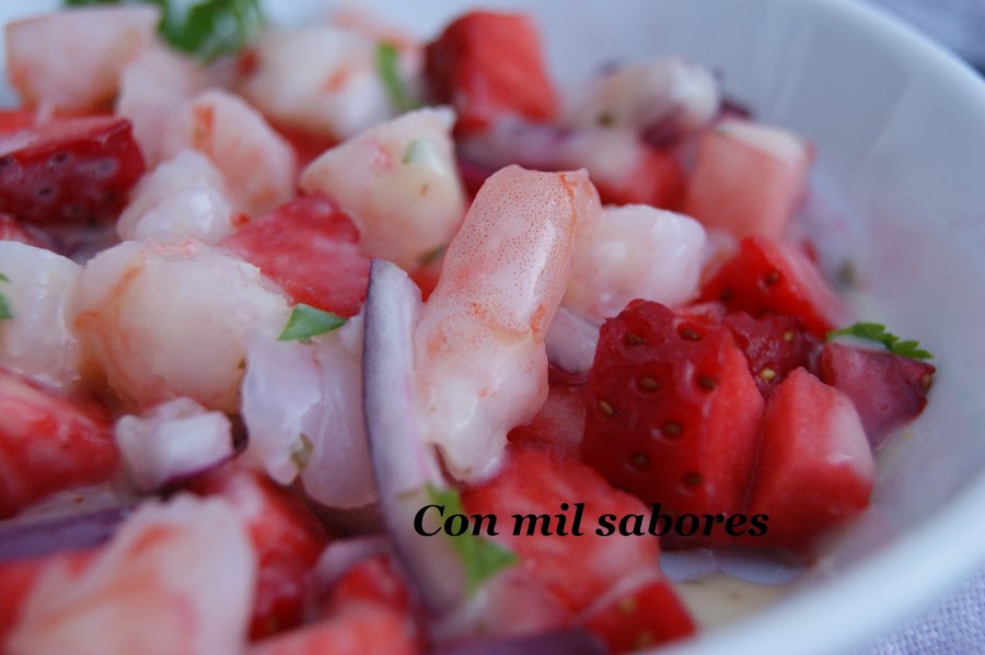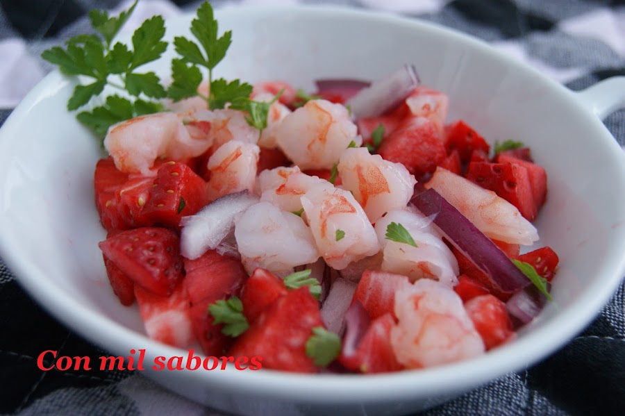 os aseguro que el contraste del jugo, los langostinos fresquísimos y buenísimos y el dulzor de la fresa todo mezclado no os va a dejar indiferentes. Con esta receta desearéis que todos los viernes sean de vigilia.