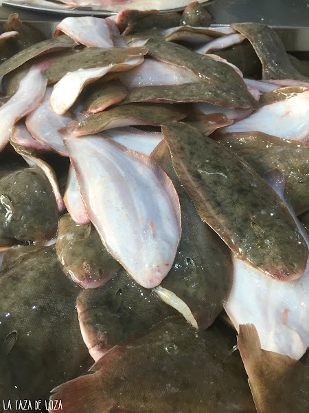 En esta ocasión he utilizado lenguados de estero, antiguamente al terminar las labores de extracción de sal de las salinas, se sacaba el pescado que había quedado atrapado en las piscinas naturales de agua de mar que hay en torno a las salinas y se preparaba sobre tejas encima de las brasas y que todavía se prepara así cuando hay esas despescas de estero, esta imagen inferior es del día en que compré estos lenguados para este plato y para freírlos enteros.
