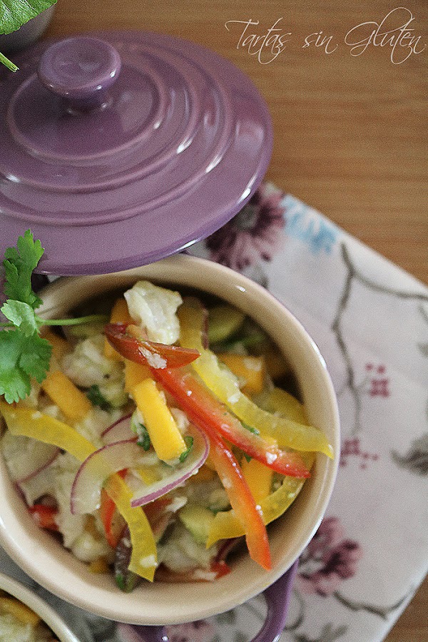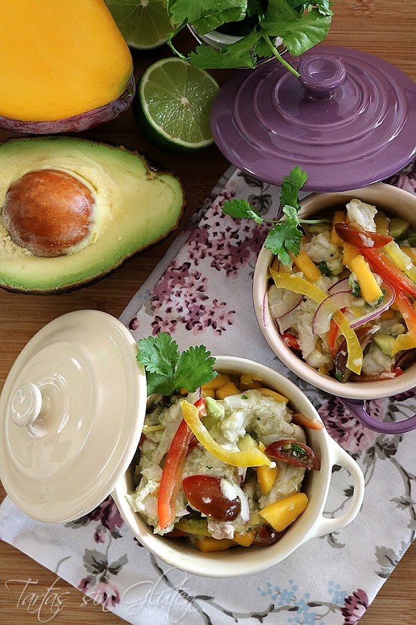 Añadimos el mango y el aguacate cortado en cuadradillos.