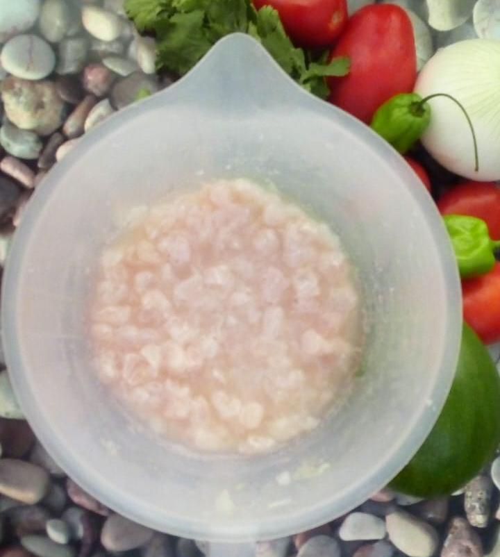 Exprimir el jugo de los limones y agregarlo al pescado, poner un poco de sal, aproximadamente 1/2 cucharadita chica.