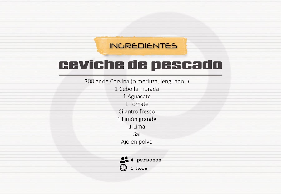 Para esta versión del ceviche he usado corvina, pero podéis usar cualquier tipo de pescado blanco, ya sea merluza, lenguado, etc...