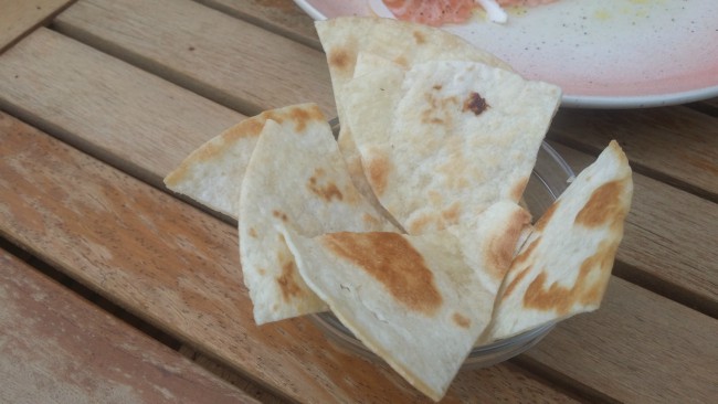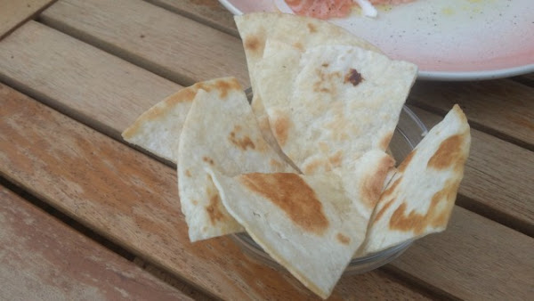 - Mientras, coger cada fajita y pasarla por la sartén, sin aceite ni nada. por las dos caras, hasta que empiece a quedarse un poco durita. Sacar y cortar en 8 trozos cada una. Esto hacerlo justo antes de servir.