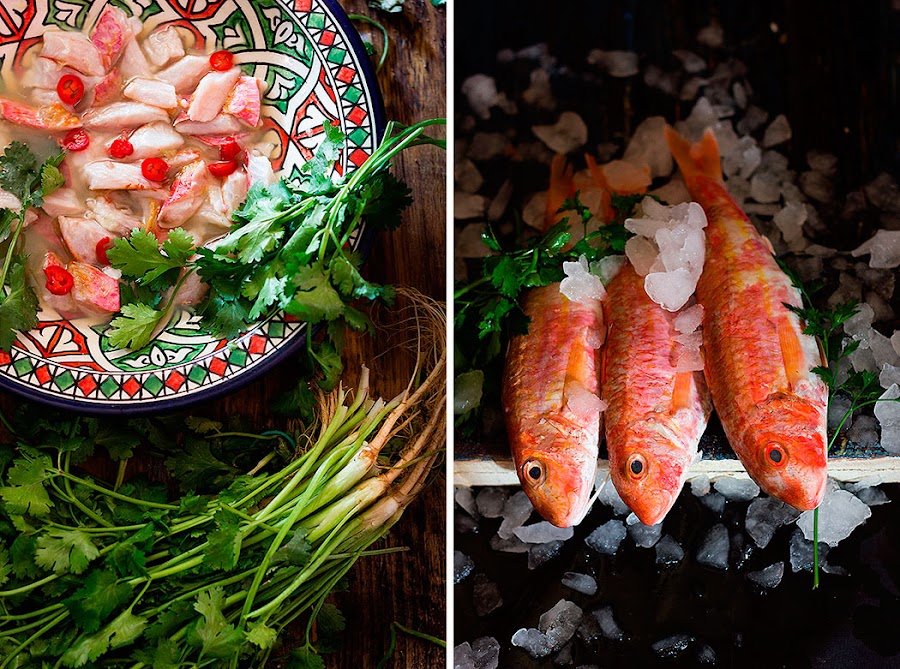 Normalmente el pescado que utilizo para esta receta es la corvina, pero en ésta ocasión no he podido resistirme a éstos salmonetes, me encantan tanto por su exquisito y sabroso sabor como por su textura prieta y tersa.