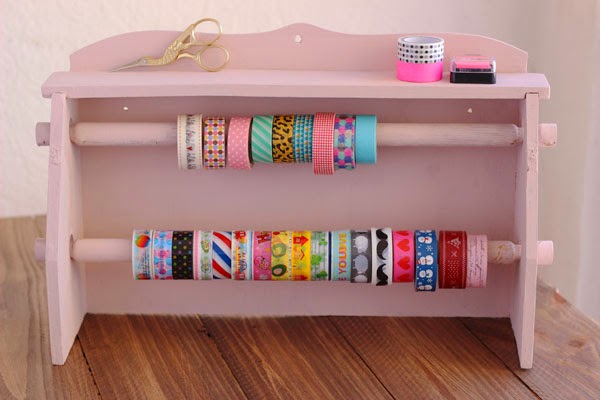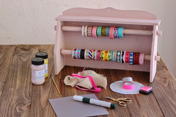 Mi siguiente proyecto trae una confidencia incluida: sufro cierto síndrome de Diógenes y además de no tirar nada, recojo todo aquello que pueda ser restaurado y tener una vida mejor. Así que me traje de casa de mis padres un viejo soporte de rollos de cocina y desde el principio sabía cual sería su nueva utilidad: expositor de washi tapes.