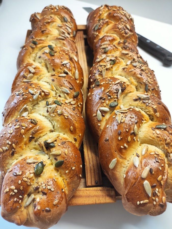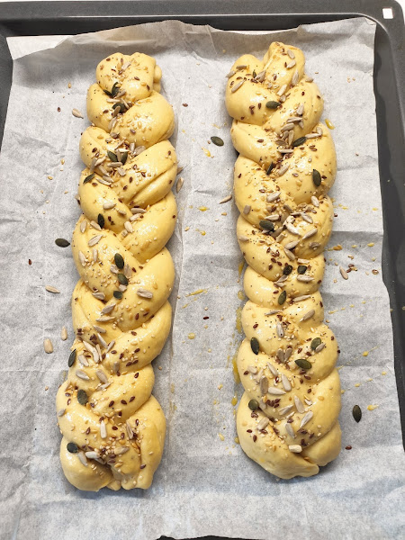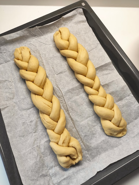 Una vez hechas las trenzas dejamos en la bandeja tapado 1 hora aproximadamente.