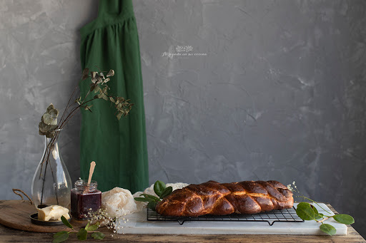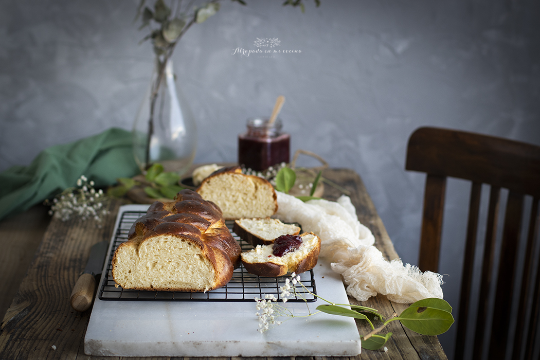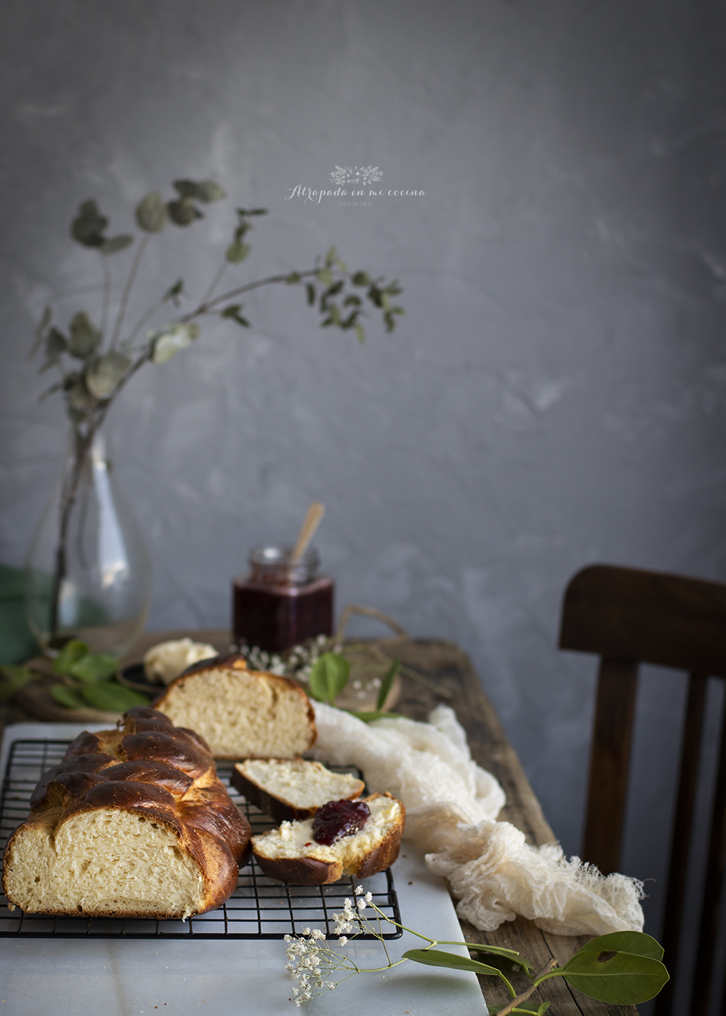 Seguimos en modo panarra, y hoy con una pan judío o Challah, se trata de un pan trenzado que los judíos preparan para el Sabatt y otras celebraciones religiosas. Es un pan que había visto en redes muchas veces pero que hace unas semanas vi en la serie Unorthodox de Netflix y me terminó de seducir por completo. No se si es porque la serie me ha encantado o porque el pan que sale en la misma es perfecto (a diferencia del mío que no me ha quedado muy bonito), pero la verdad es que ha valido la pena prepararlo, porque en casa hemos disfrutado toda la semana de unos desayunos estupendos, acompañando unas tostadas de este rico pan con mantequilla casera y mermelada de fresas casera.