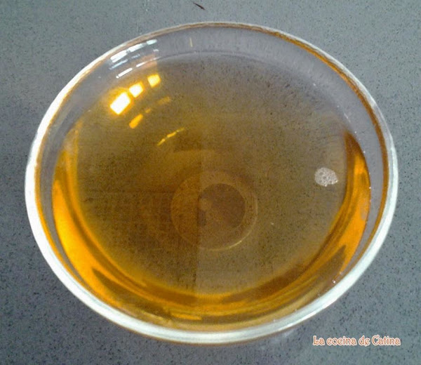 Para la elaboración del almíbar, ponemos a calentar en un cazo un vaso de agua, dos cucharadas de azúcar y medio vasito de vino dulce. Dejamos hervir durante 5 minutos y reservamos.