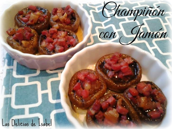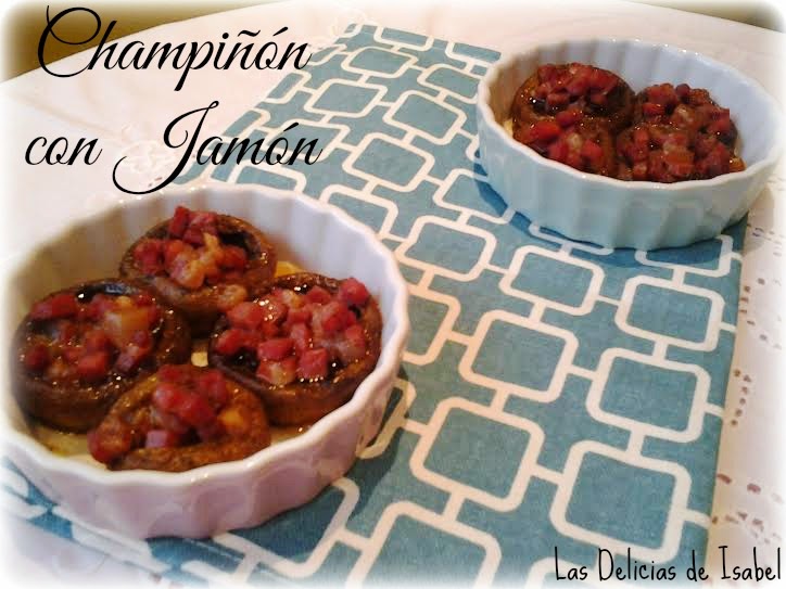 Cortamos el jamon en taquitos y lo colocamos dentro de los champiñones. Ponemos una cucharadita de aceite de perejil en cada uno y horneamos a 200º durante 10-15 minutos.