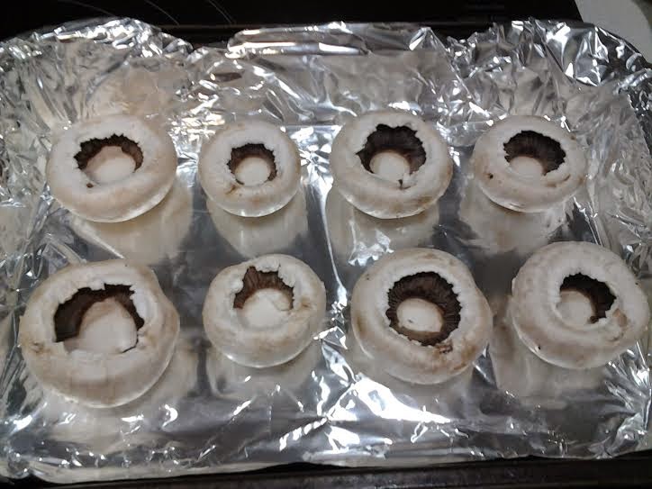 Aceite de oliva con perejilLimpiamos los champiñones, les quitamos el rabito y los ponemos sobre una bandeja de horno con el agujero hacia arriba.