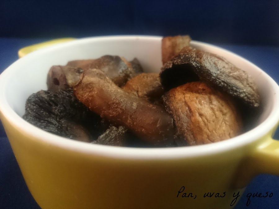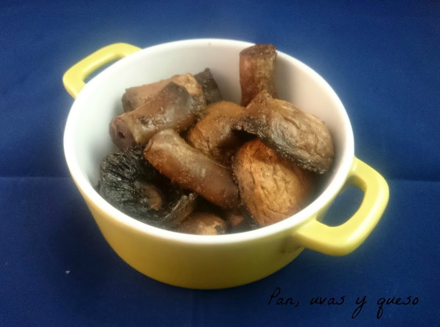 Sacamos el bol de la nevera y calentamos una sartén. Echamos los champiñones y dejamos que se guisen hasta que estén tiernos.
