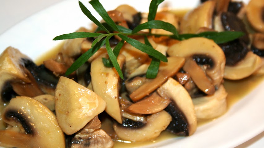 He preparado estos champiñones hace unos días. Venía a visitarme mi amiga Esther a media mañana y quería servirle algo que no fueran unas patatas chips y unas aceitunas. Encontré en la nevera unos champiñones enormes que no tenían demasiado buen aspecto aunque si que eran hermosos, bien grandes.