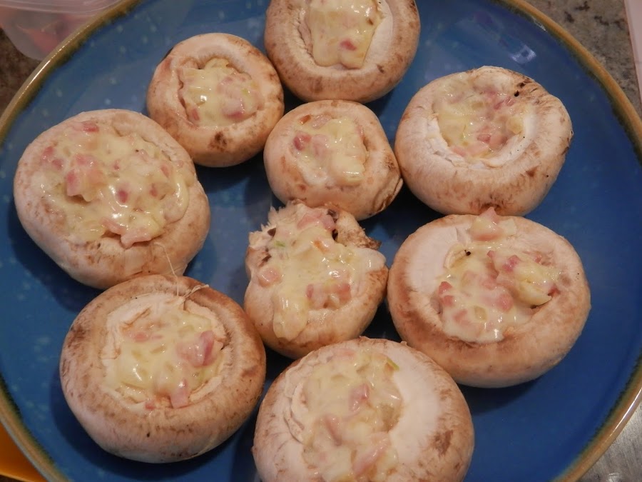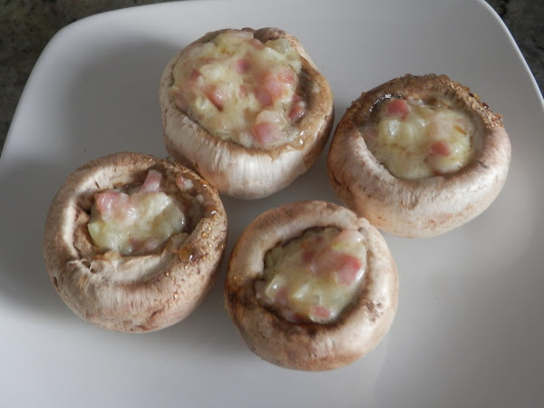 Con ayuda de una cucharita, ve rellenando los huecos de los champiñones.