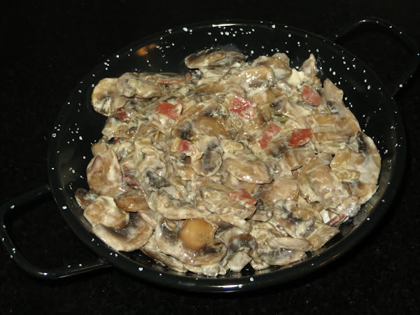 Una vez que han sacado todo el agua los champiñones, añadís el jamón serrano y el queso crema. Dais unas vueltas hasta que todo este mezclado, sacáis y listo para comer. A mi me gusta el jamón poco cocinado, si queréis que se cocine más añadirlo con anterioridad.